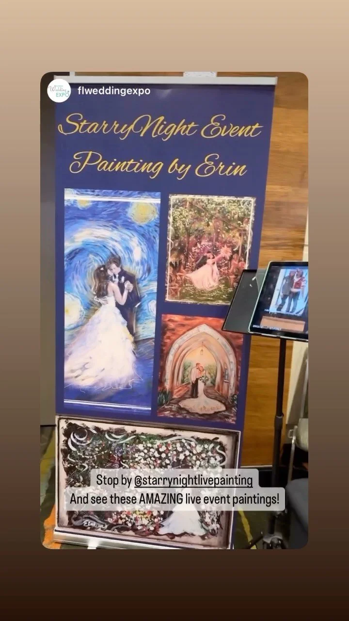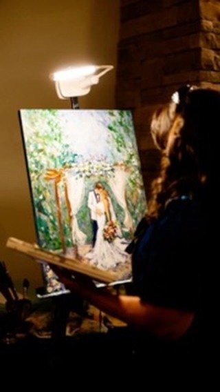Hey there , I’m Artist Erin Curran! I specialize in live wedding painting and can’t wait to paint your very own love story on canvas to treasure always! I’m based in Orlando, Florida and available for travel - My acrylic paintings are wedding couple focused and designed to be finished the night of your big day…. You choose the wedding moment to be painted … from vows to first kiss , even a dramatic dip kiss to first dance - anything is possible with the magic of painting! Cheers!!